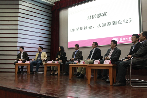 随后,苏州市科技局局长黄戟、我校科技产业部常务副部长朱巧明、苏州大学国家大学科技园顾问倪均强、机电工程学院院长孙立宁、苏州大学创新研究中心特聘教授董洁林、浙江赛伯乐投资管理有限公司董事长徐震波,以及陈林森、傅哲宽共坐主席台,围绕“创新型社会、从国家到企业”的主题,与学员们进行了精彩对话。现场气氛活跃,对话中给许多在场企业家表示,创新训练营和创新创新峰会的举办为他们今后创新创业激发了新的灵感。