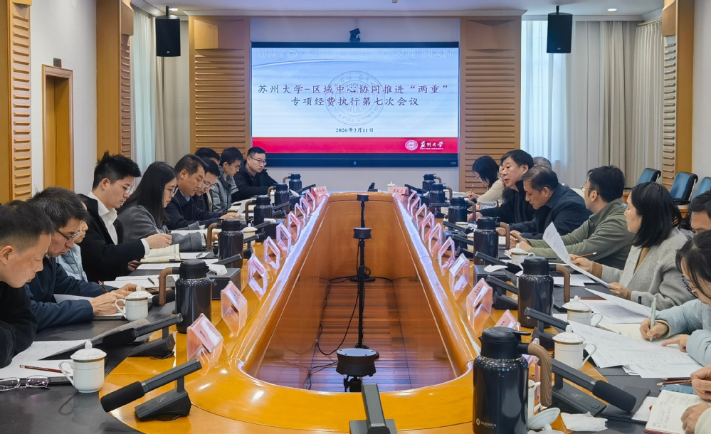 3月11日上午,苏州大学—区域中心协同推进“两重”专项经费执行第七次会议在我校顺利召开。校党委常委、副校长张正彪出席会议,相城区科技局、独墅湖科教创新区、先进材料分中心、生物医药分中心及校内相关部门负责人等参加了会议。
